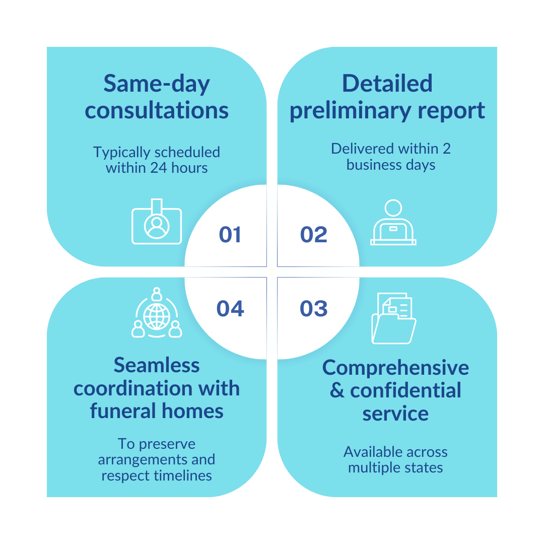 We provide independent, compassionate autopsy services for families, clinicians, and attorneys.